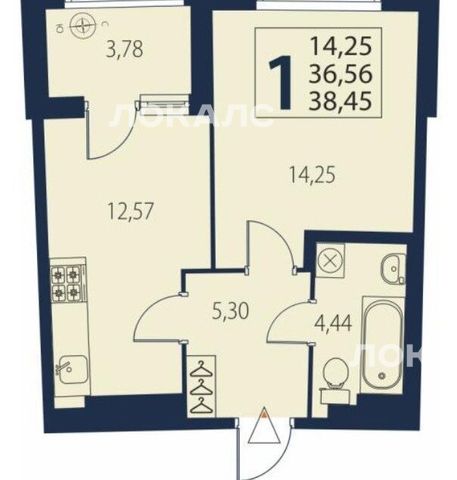 1-комнатная квартира: Парголово, Брюлловская улица, 3 (36.5 м²)