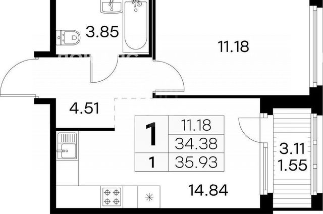 1-комнатная квартира: Санкт-Петербург, Суздальское шоссе, 24к3 (36.8 м²)