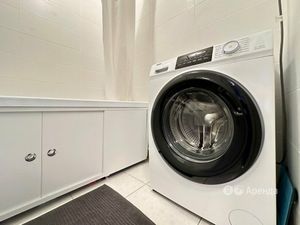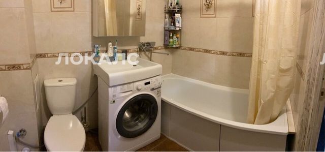 В ванной комнате стиральная машинка.