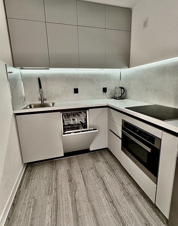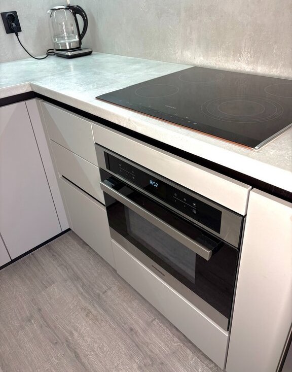 кухонный гарнитур собрали в новакухни, подвесное хранение 4 основные и 4 верхние ящика, открываются зацепом и нажатием на амортизаторе соответственно