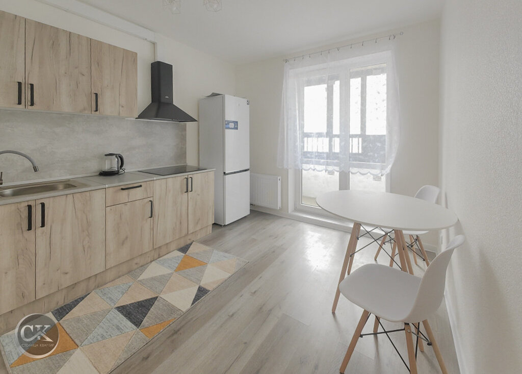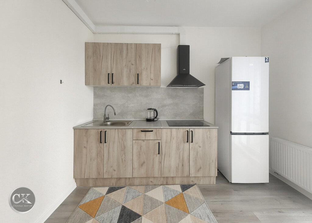 - полностью оборудованная кухня: холодильник, варочная панель, вытяжка, электрический чайник.