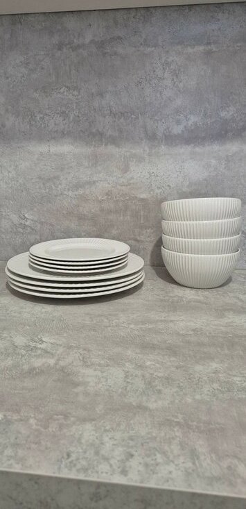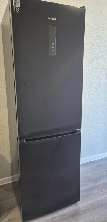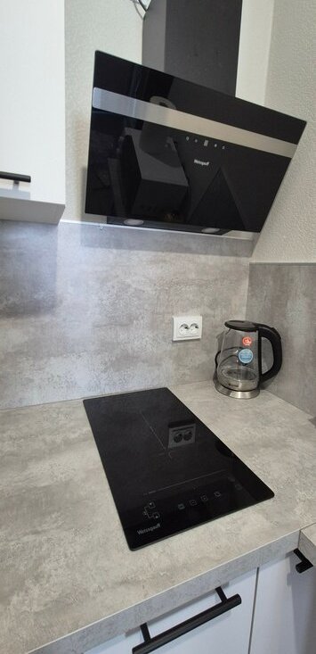 Кухонная мебель в бело-сером цвете, вся техника Weissgauff в черном цвете.