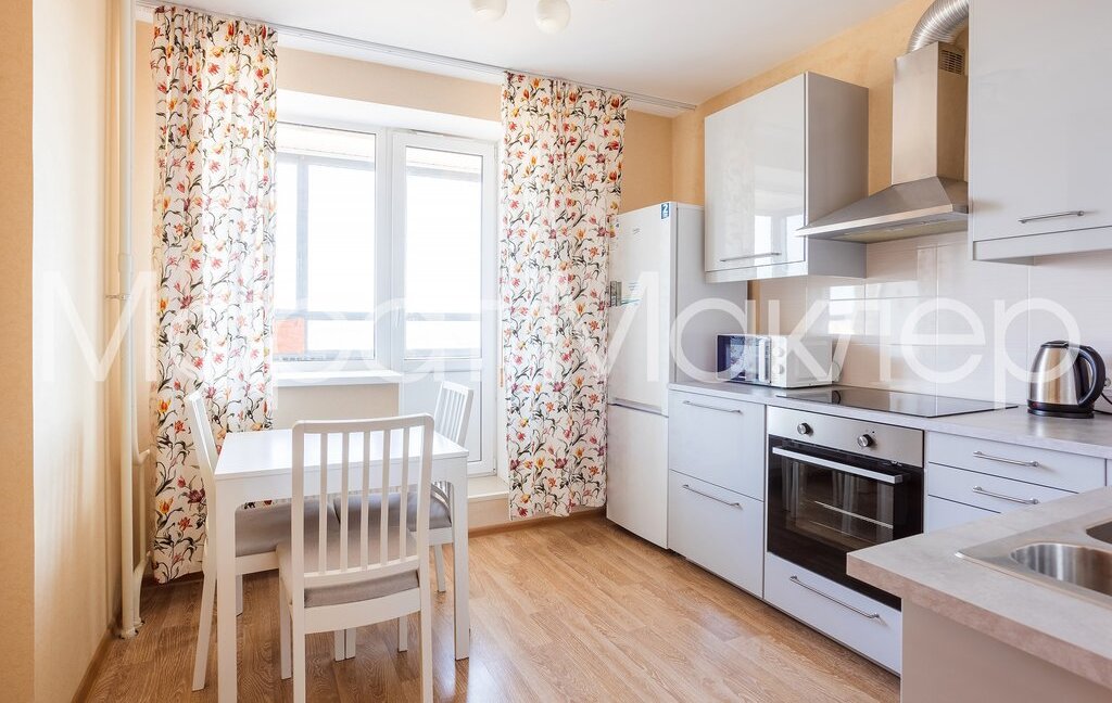 Квартира с балконом расположена на 10-ом этаже, действительно КОМФОРТНАЯ планировка. Квартира включает в себя: вместительную кухню ПРАВИЛЬНОЙ ФОРМЫ - 9,5 м2, есть вся необходимая кухонная техника: варочная панель, вытяжка, холодильник, микроволновая печь, чайник, стиральная машина в ванной комнате.
