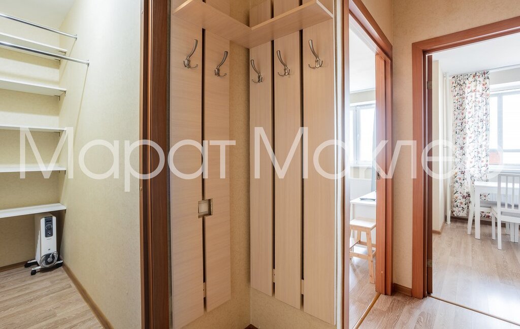 В прихожей есть вешалка и большая кладовая для хранения одежды и обуви - 1,3 м2.