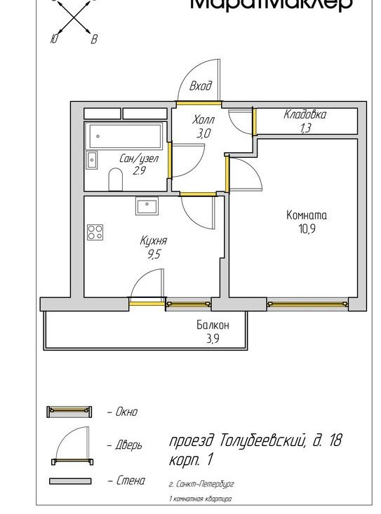 Студия Санкт-Петербург пос. Парголово, проезд Толубеевский, 8к2 (22.1 м²)