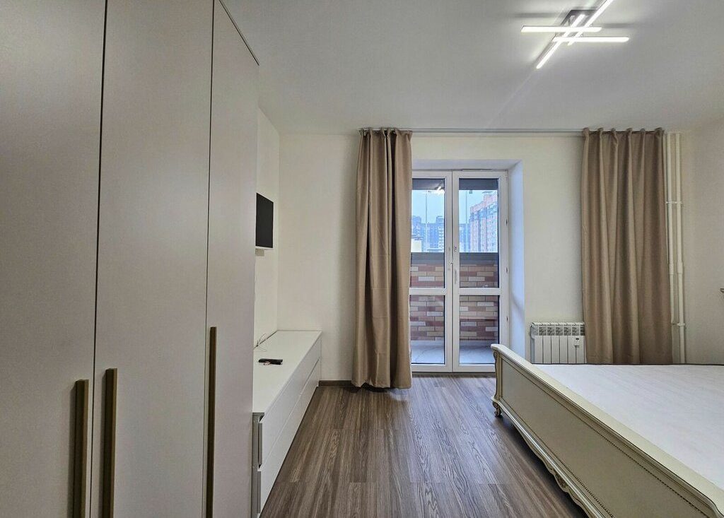 В квартире есть большая лоджия, из которой открывается панорамный вид на город, а также есть дополнительные шкафы для хранения вещей.