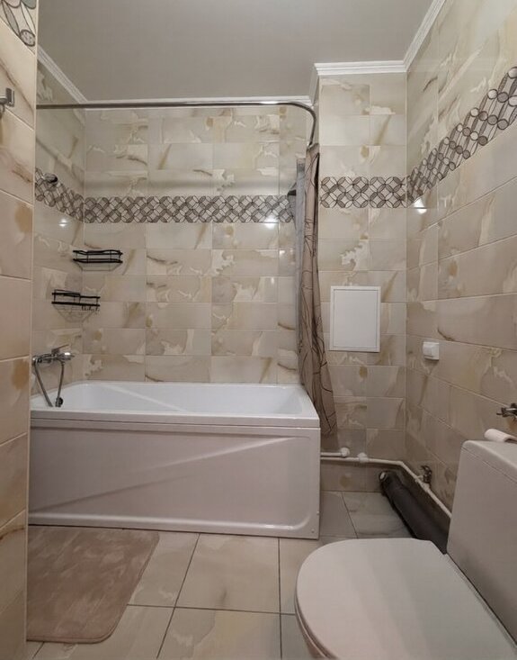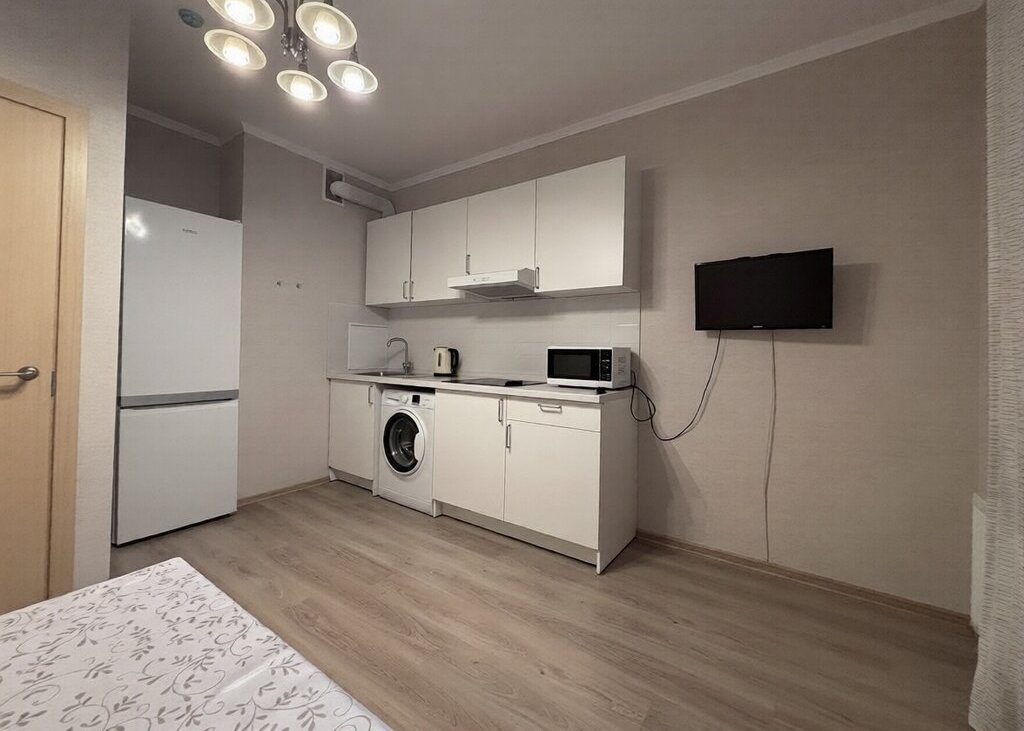 В квартире имеется вся необходимая мебель и техника: кухонная мебель, утварь, стиральная машина, холодильник, микроволновка и духовка. Всё продумано для комфортного проживания.