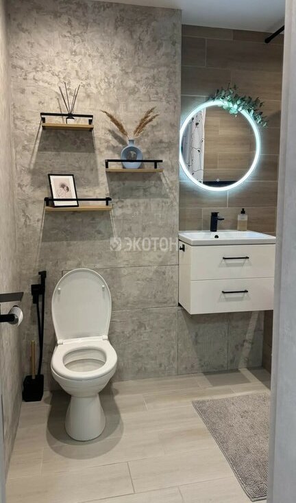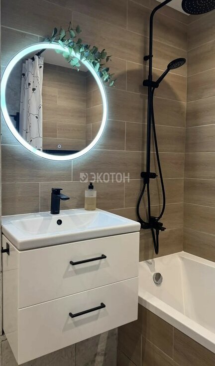 Большая ванная185×80) с подушкой,тропический душ и гигиенический душ,смесители swedbe,раковина и ванна Cersanit.Полноразмерная стиральная машина,огромная зона хранения над ней,проточные фильтры на холодную и горячую воду,зеркало с подсветкой,принудительная вытяжка.Отделка:керамогранит+влагостойкая штукатурка.
