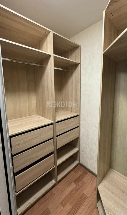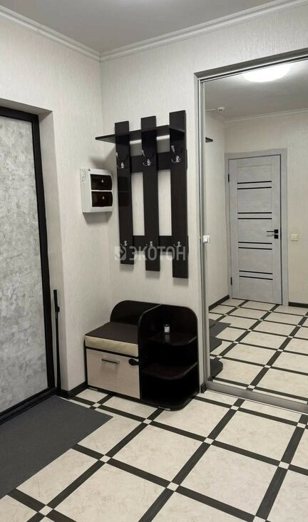 Полноценная гардеробная,в прихожей-большое зеркало,которое визуально расширяет пространство.