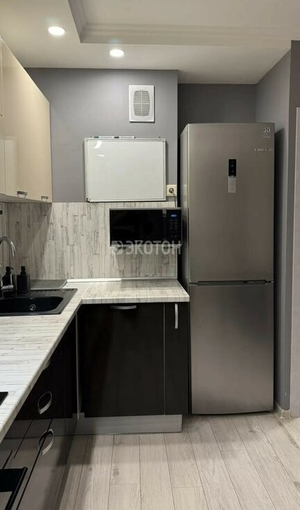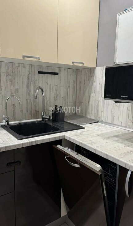 На кухне имеется вся бытовая техника:посудомоечная машина,духовой шкаф,варочная панель,вытяжка,СВЧ,холодильник с большой морозильной камерой,тостер,чайник с контролем температуры.Каменная раковина,встроенный фильтр для питьевой воды Аквафор.