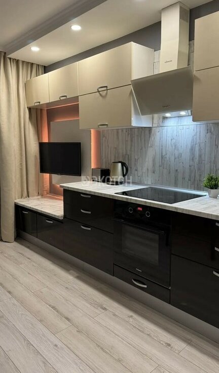 В квартире кухня-гостинная,где приятно жить,а не просто готовить,огромное количество зон хранения,отдельный свет над зоной готовки.