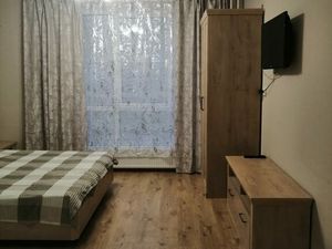 Есть всё необходимое для проживания оборудование и мебель. Стеклопакеты. Застекленная лоджия. Установлены счетчики воды и тепла. Санузел в кафеле. Небольшая гардеробная.