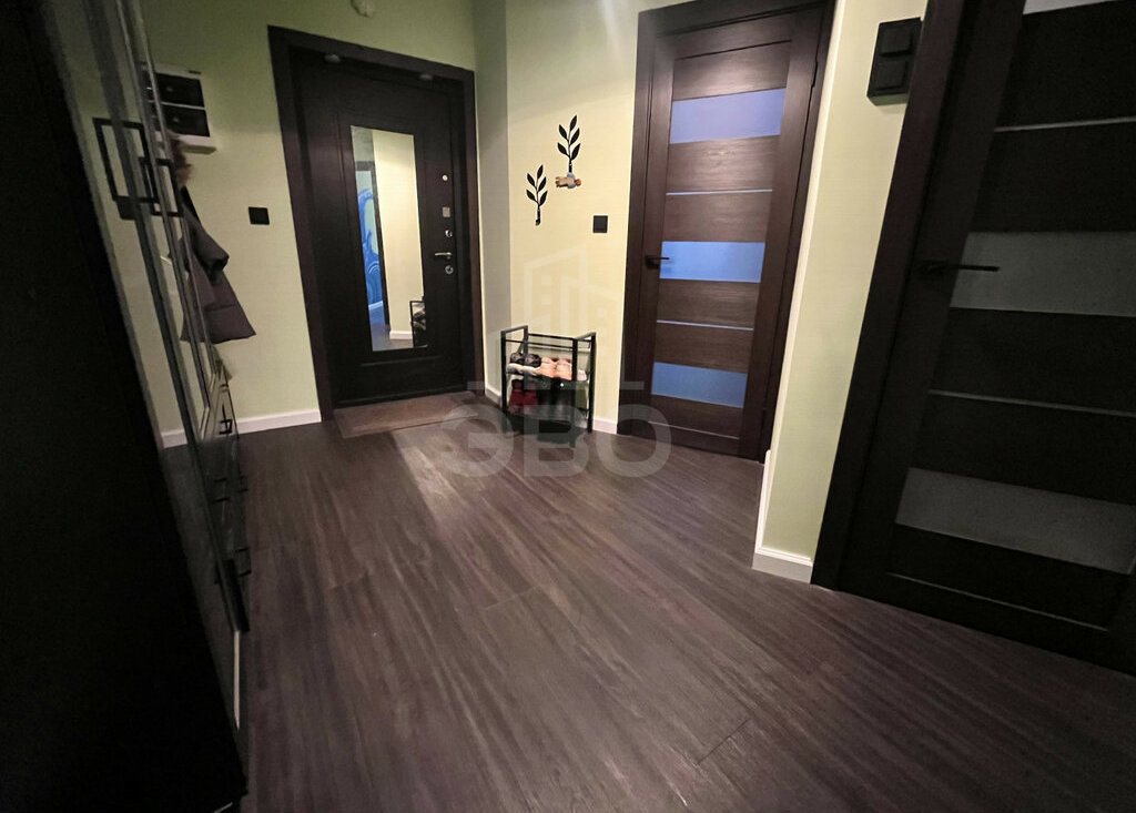 вместительный кухонный гарнитур, гардеробная у входной зоны.