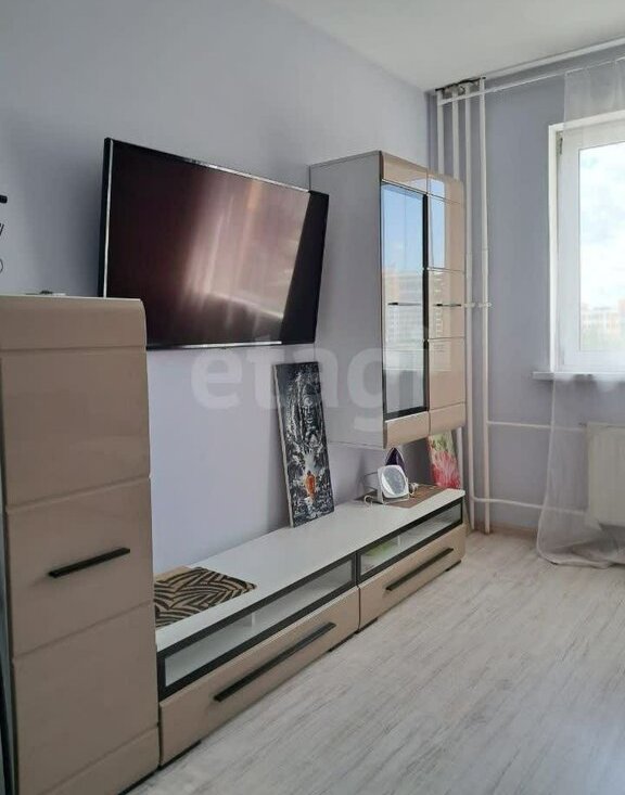 Предлагается к сдаче современная однокомнатная квартира с полным комплектом мебели и качественной бытовой техники, включая кровать, диван и телевизор.