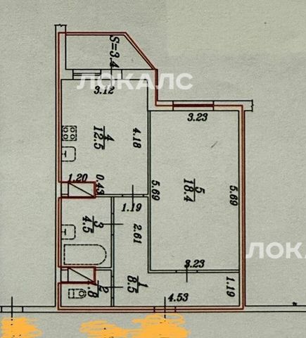 Жилая площадь 18,4 кв.м., кухня 12,5 кв. м, внутри евро ремонт.