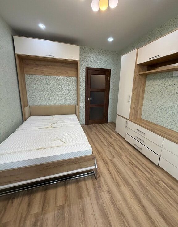 Уют и порядок: В квартире свежий ремонт, современная мебель и много света. Вместительный комод под ТВ и шкафы в прихожей позволяют легко спрятать все лишние вещи. В комнате шкаф- кровать , можно разобрать и собрать по необходимости ,большая стенка с полками под вещи . Есть ещё небольшой диванчик , он раскладывается.