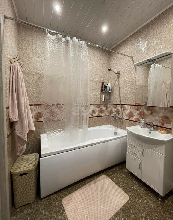 Ремонт свежий, есть вся необходимая мебель, техника (в т.ч. посудомоечная машина), посуда, интернет, теплые полы в ванной комнате.
