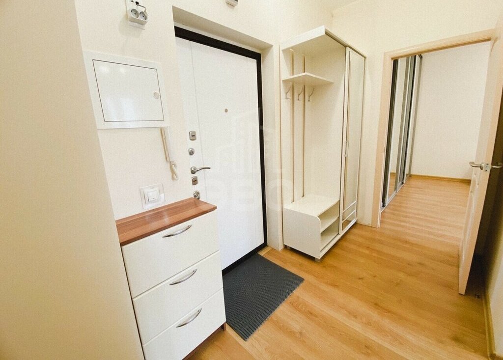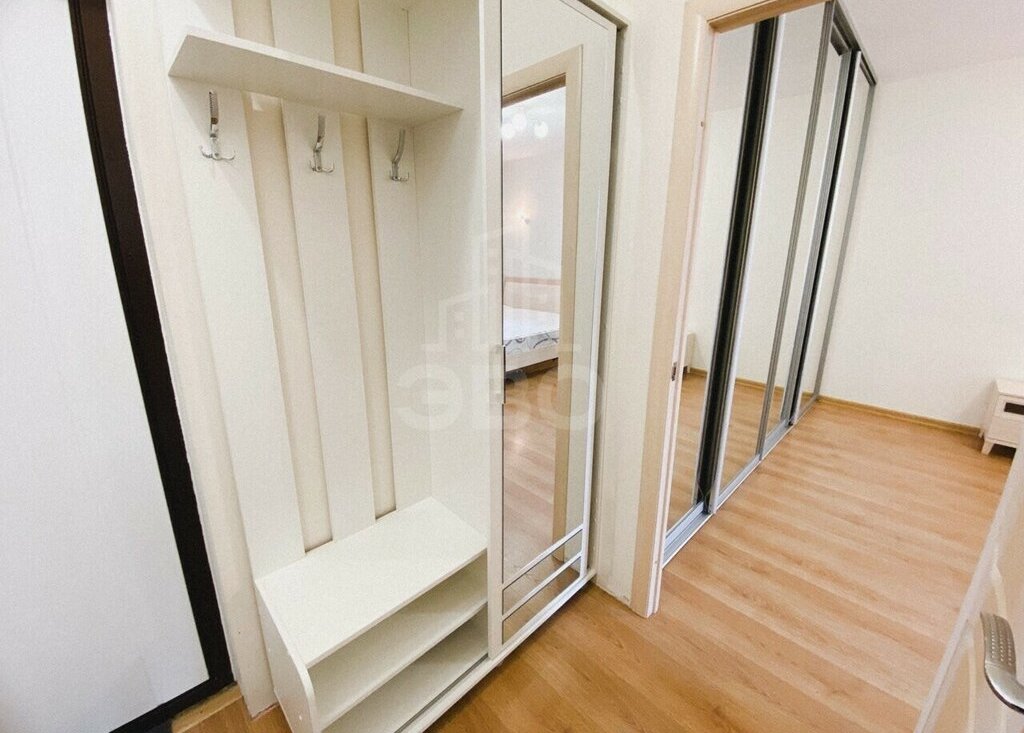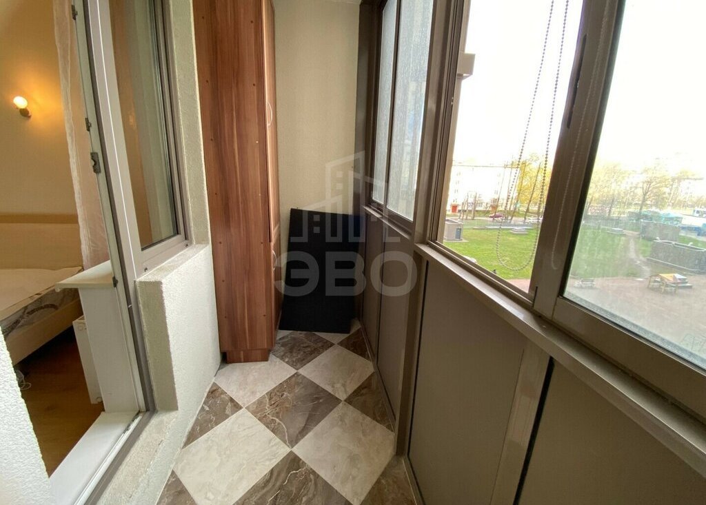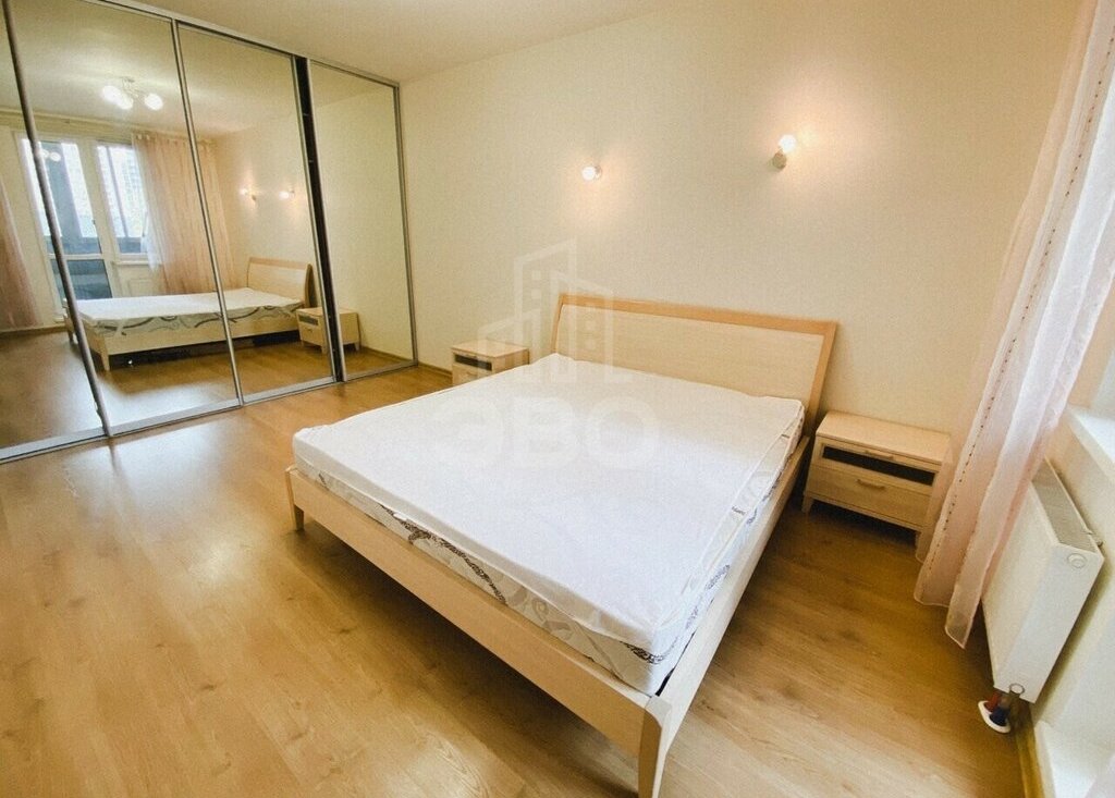 Квартира с современным ремонтом, полностью укомплектована и готова к проживанию. Просторная лоджия. В комнате — большая двуспальная кровать и вместительная гардеробная.