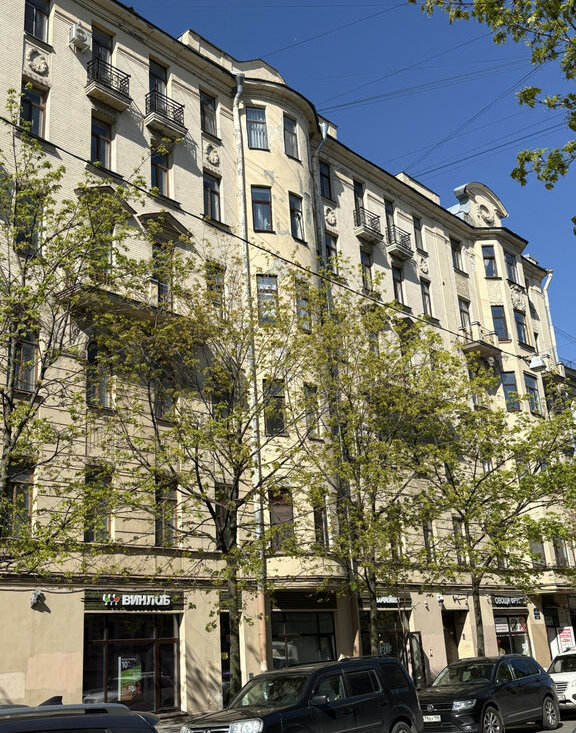 В доме на первом этаже две кофейни, несколько магазинов, аптека. Летняя зелень линий, морской воздух залива, самый широкий и зелёный проспект города будут радовать Вас.