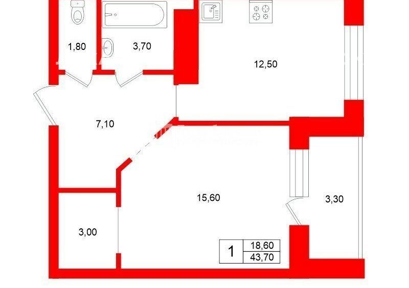 1-комнатная квартира: Санкт-Петербург, 5-й Предпортовый проезд, 2 (43.7 м²)