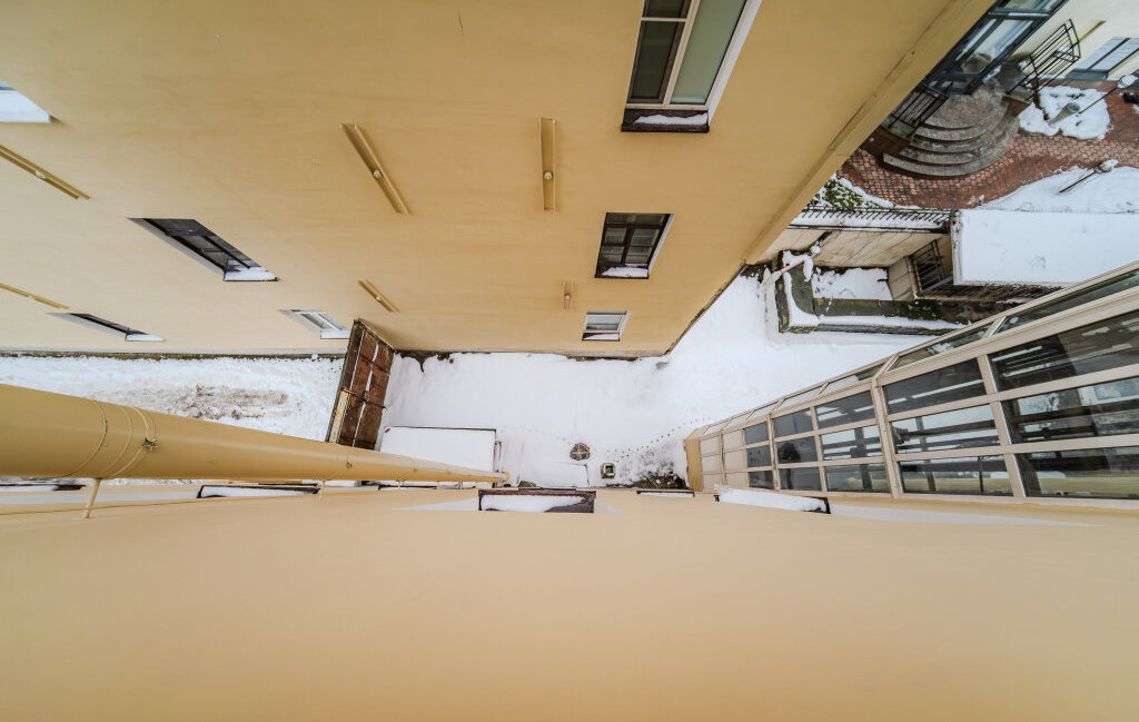 Квартира находится на 4 этаже 6-этажного дома, есть лифт. Толстые кирпичные стены обеспечивают отличную шумо- и теплоизоляцию: летом в квартире прохладно, зимой — тепло и комфортно.