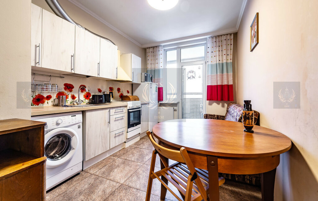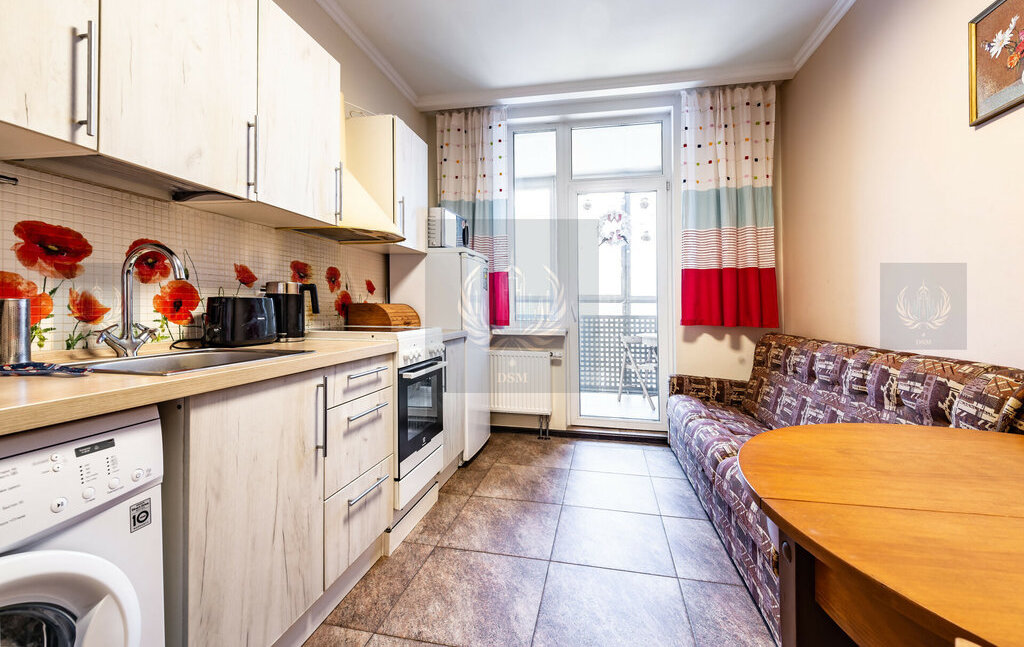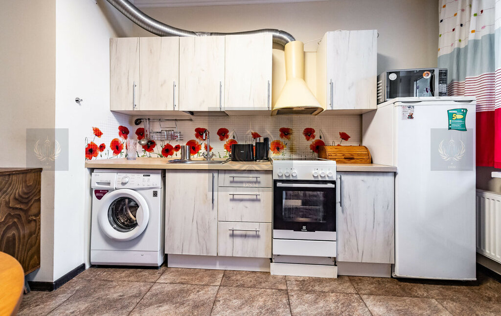 Квартира полностью меблирована и укомплектована всем необходимым для комфортного проживания: двуспальная кровать, диван, кухонный гарнитур, холодильник, стиральная машина, плита, чайник, микроволновая печь.