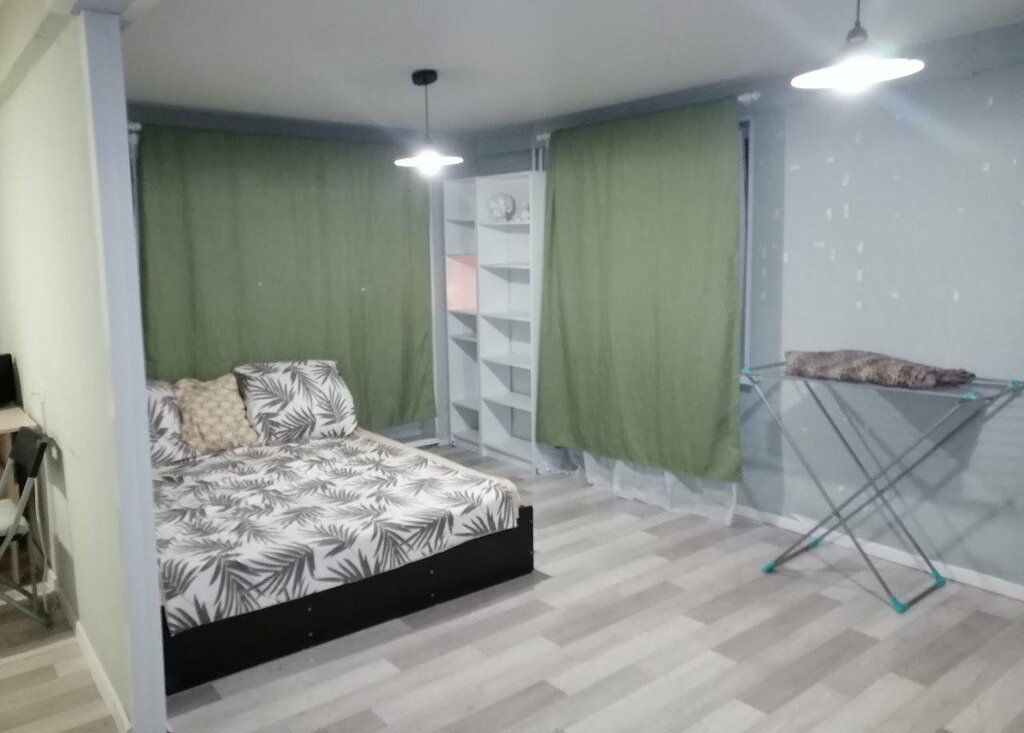 Однокомнатная квартира полу-студия в тихом зеленом квартале. Рядом парки, развитая инфраструктура (сетевые магазины, "Вкусно и точка", "КБ" ...) Удобное сообщение с центром города.