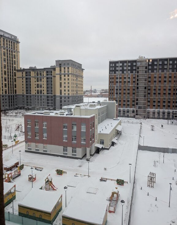 Из окон вид во двор и немного открывается вид на воду. Детский сад во дворе не перекрывает обзор, а его шум на 7-м этаже не слышен. Комфорт без компромиссов.