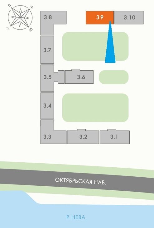 Здесь меньше этажей, а значит — спокойнее. Минимум шума и пыли с набережной, в отличие от секций, выходящих прямо к дороге.