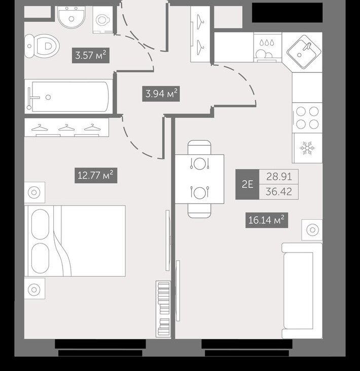 Продается просторная однокомнатная квартира в новом современном доме. Общая площадь составляет 36.2 кв. м, из них 12.6 кв. м — жилая площадь и 16.2 кв. м — просторная кухня, что идеально подходит для комфортного проживания. Квартира расположена на 7 этаже 11-этажного монолитного дома, построенного в 2026 году. Высота потолков — 2.7 метра.