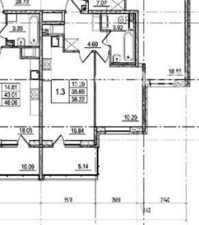 1-комнатная квартира: Санкт-Петербург, проспект Авиаконструкторов, 49 (38 м²)