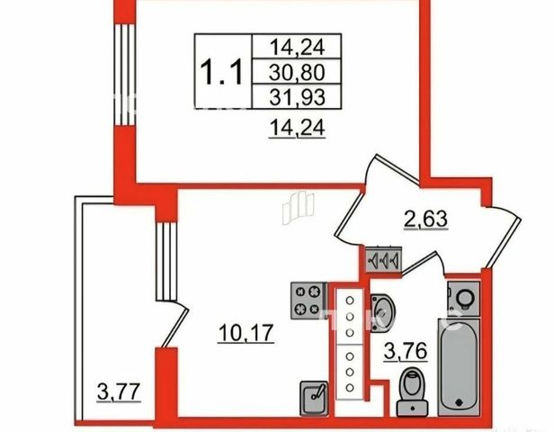 1-комнатная квартира: Санкт-Петербург, Арцеуловская аллея, 21 (30.8 м²)