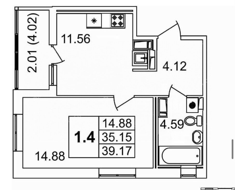 1-комнатная квартира: Санкт-Петербург, Большой Сампсониевский проспект, 77 (35.4 м²)