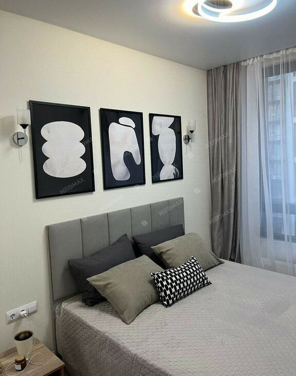 В квартире новая мебель и бытовая техника, современный ремонт, кондиционер, большие окна, лоджия.