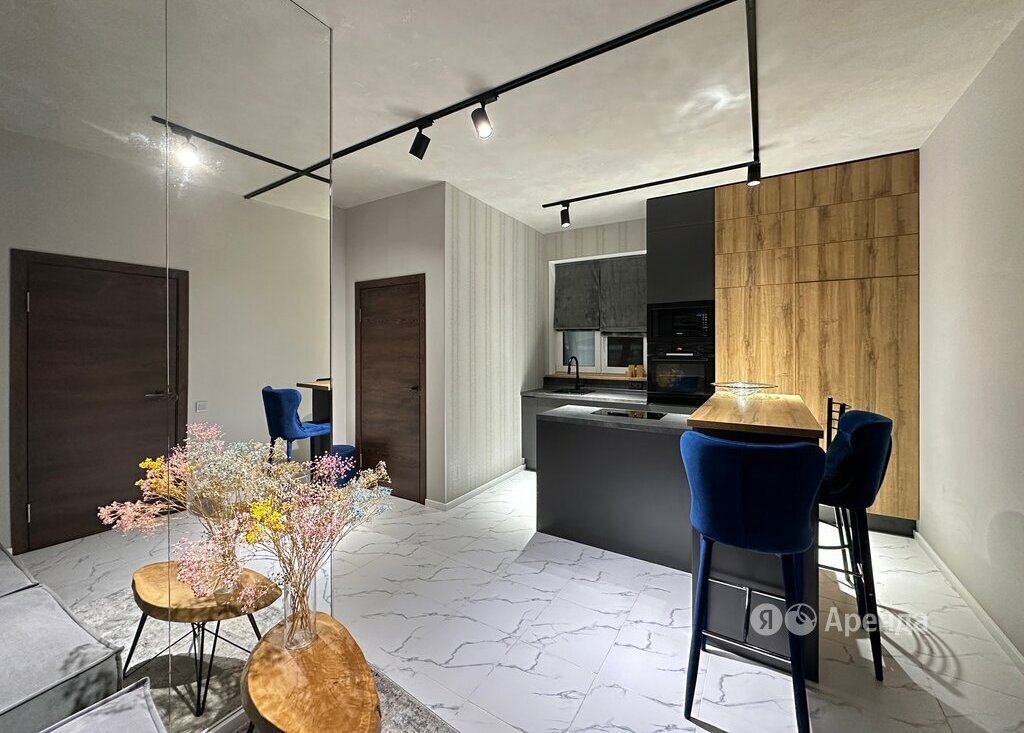 Сдаётся 1-комнатная квартира площадью 41 кв.м. с дизайнерским ремонтом на 3 этаже в 5-этажном доме на срок от 11 месяцев. Из техники есть: