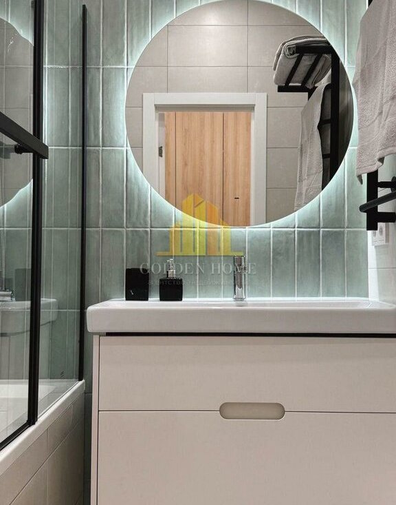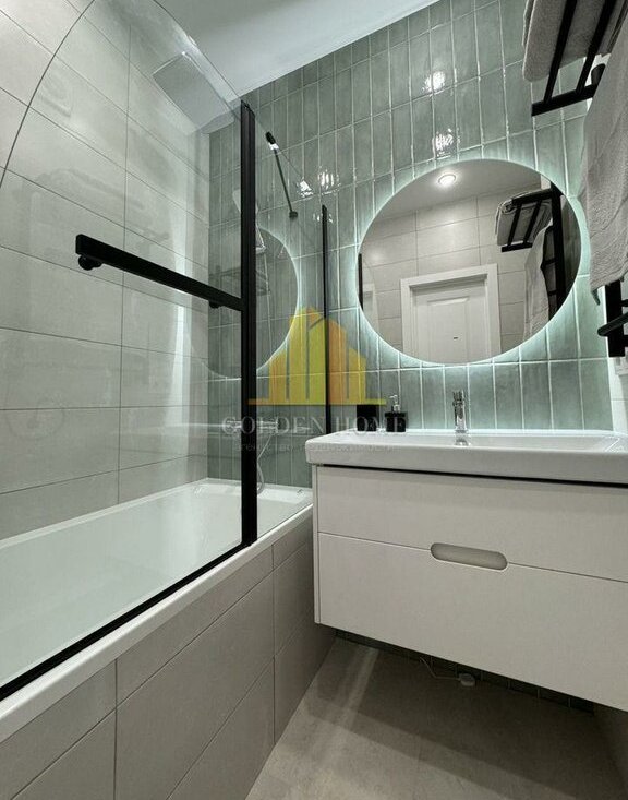 — Ванная комната: комфортная ванна, тропический душ с термостатом, широкая раковина 90 см, качественная сантехника.