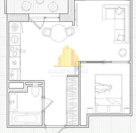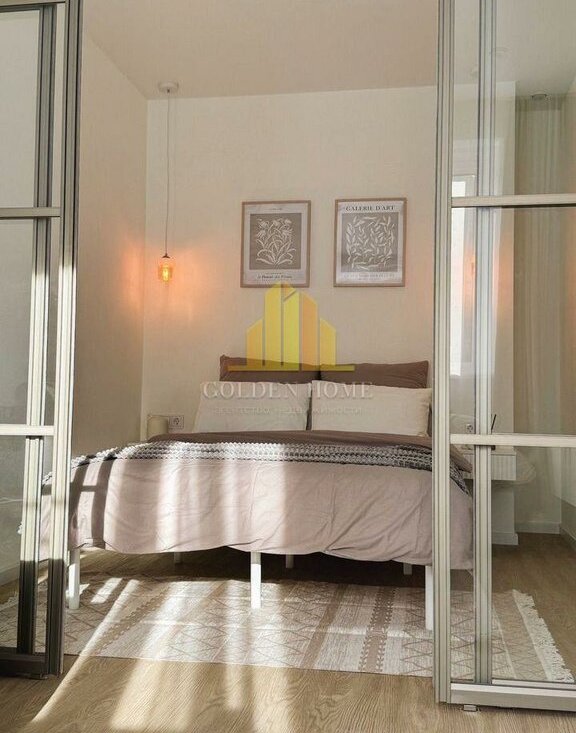 — Большая кухня с выделенной гостиной зоной и отдельной спальней, есть рабочее место.