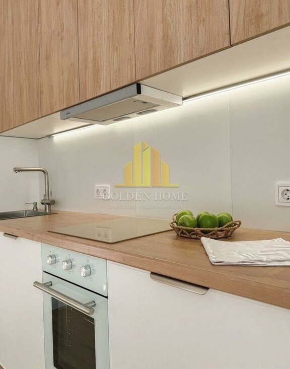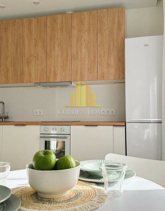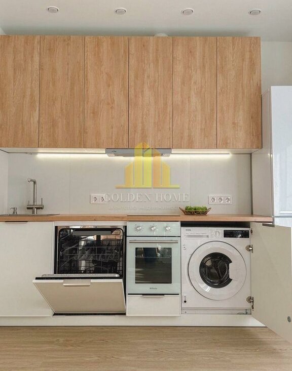 — Кухня полностью оборудована: индукционная плита, духовой шкаф с таймером, посудомоечная и стиральная машины, холодильник 2 м, микроволновка, фильтр для воды, большая зона хранения (240 см).