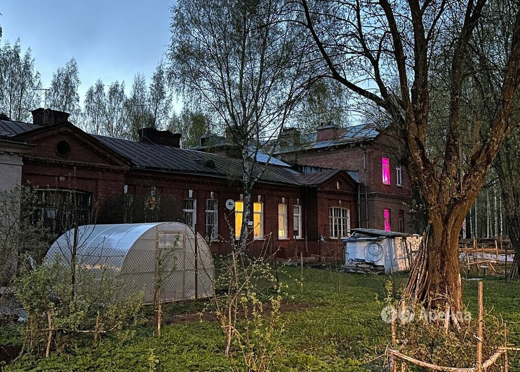 Дом - кирпичный, окна выходят во двор. Во дворе есть парковка за шлагбаумом.