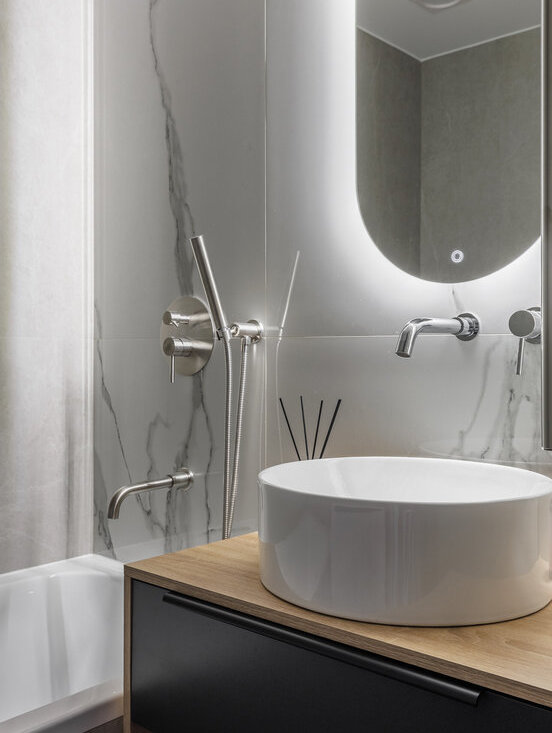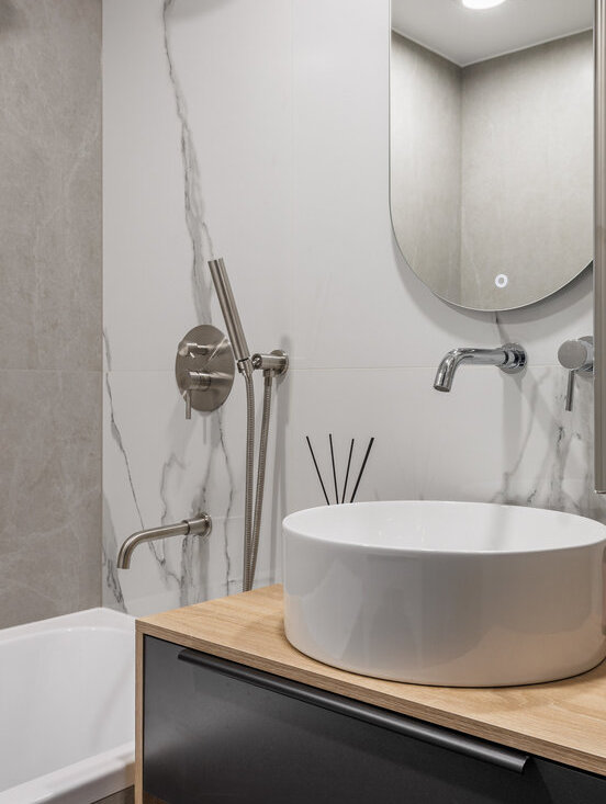 Установлены новые счетчики воды. Вся сантехника выведена на общее управление в отдельном блоке в санузле.