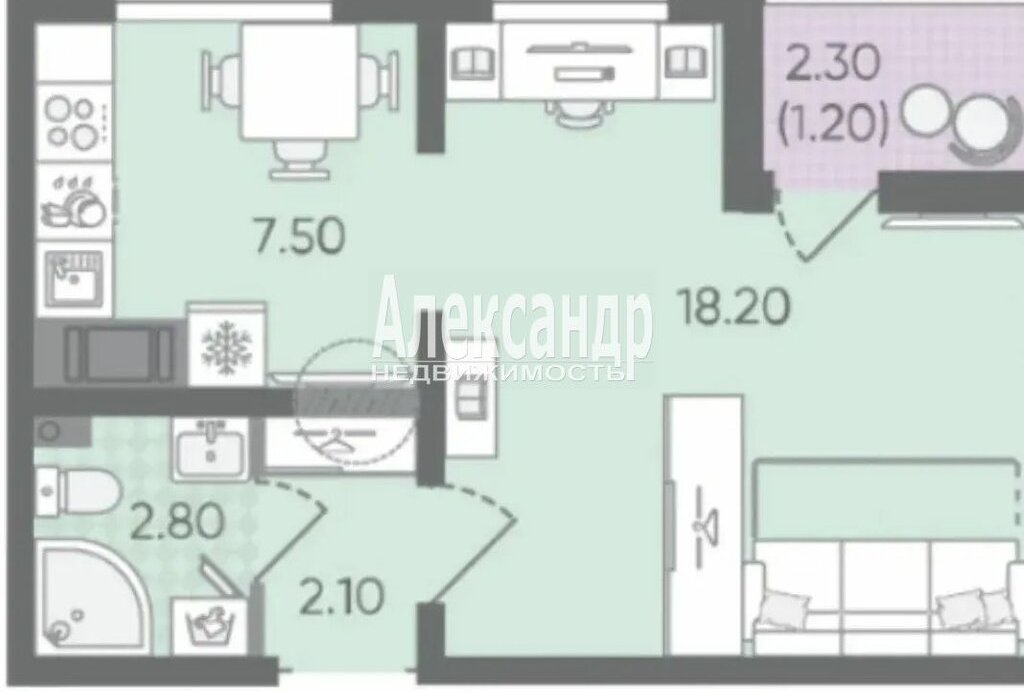 1-комнатная квартира: Санкт-Петербург, Чарушинская улица, 32 (30.6 м²)