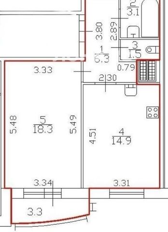 · Общая/жилая/кухня: 44,1 / 18,3 / 14,9 м²