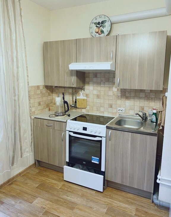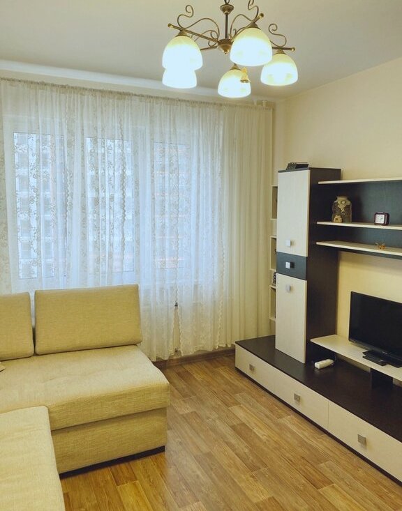 В квартире есть: Кухонный гарнитур, электрическая плита, холодильник, чайник, посуда, обеденный стол, стулья, пылесос ,телевизор , стиральная машинка, раскладывающийся диван, шкаф, комод, пуфик в коридоре, зеркало, ванна ,установлены счетчики на воду. Квартира теплая, очень уютная, в светлых тонах, большие окна, есть все необходимое для жизни, хороший просторный балкон, что позволяет наслаждаться красивым видом даже зимой.