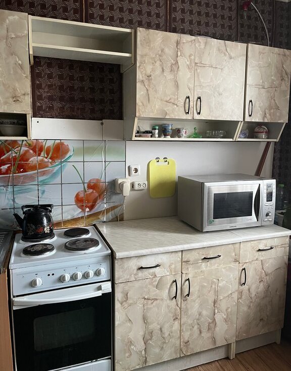 Квартира с косметическим ремонтом,полностью меблирована.В комнате и на кухне есть вся необходимая мебель,что позволяет заехать и жить без дополнительных хлопот.Кухня площадью 10,8 кв.м оборудована холодильником,микроволновой и электрической печью.Есть стиральная машина и телевизор.