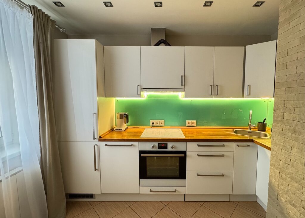 Финские двери, качественная кухня, столешница из натурального дерева. Вся сантехника Grohe.