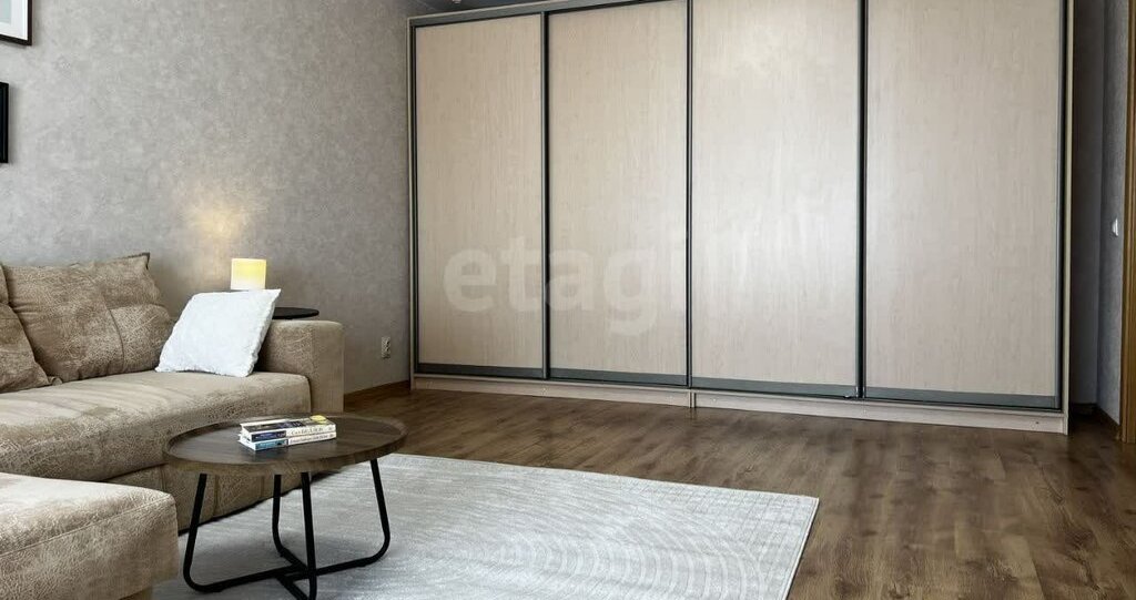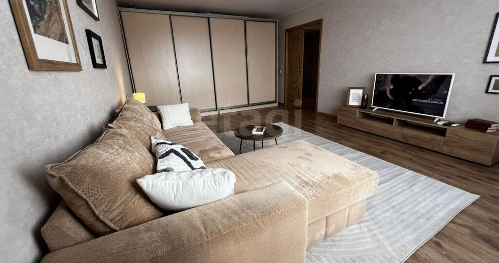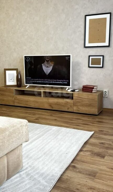 Диван, большой гардеробный шкаф, также есть отдельная гардеробная в коридоре, телевизор со СМАРТ ТВ. Проведен интернет, кабельное телевидение.