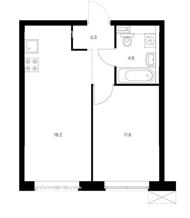 * Функциональная планировка: просторная кухня-гостиная и уютная спальня
