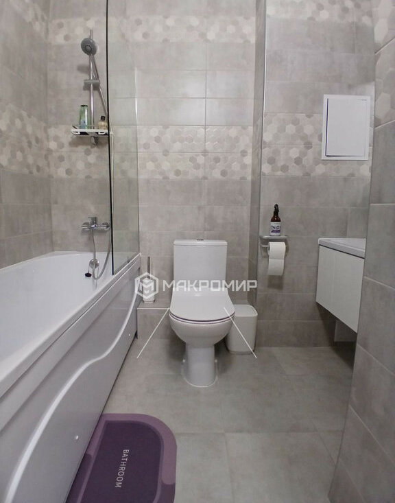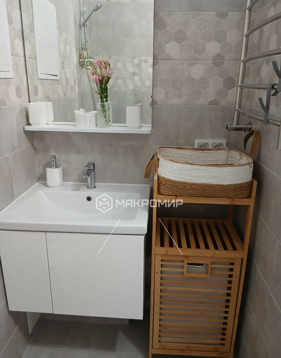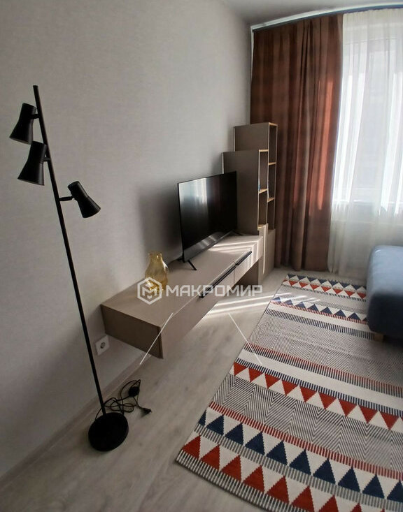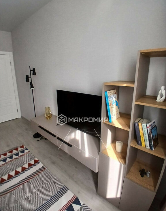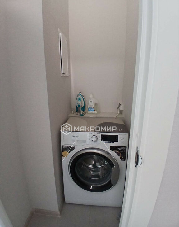 В комнате установлен телевизор с функцией смарт-ТВ, раскладной диван с матрацем, большой шкаф, а так же стеллаж и тумба под ТВ. Уютная ванная комната. Отдельная гардеробная, где установлена стиральная машина.