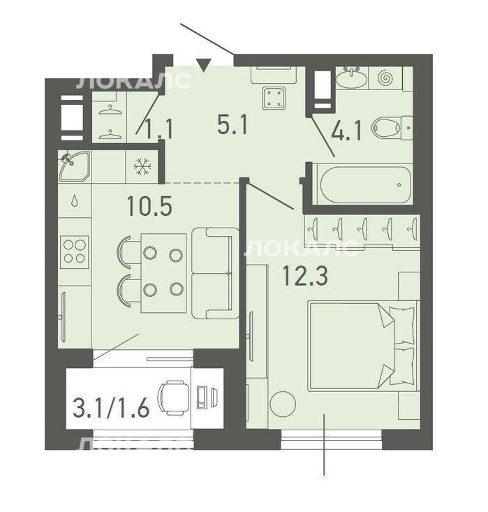 1-комнатная квартира: Санкт-Петербург, Малая Митрофаньевская улица, 8к1 (39.7 м²)