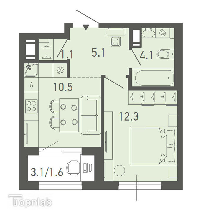 1-комнатная квартира: Санкт-Петербург, 26-я линия Васильевского острова, 7 (39.4 м²)
